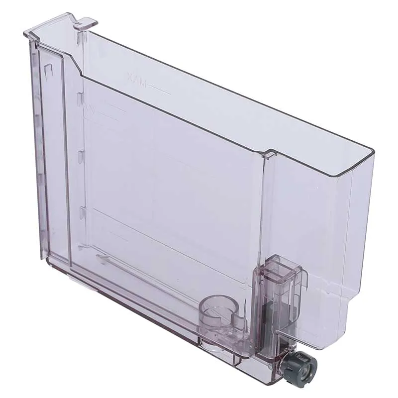 Serbatoio dell’acqua con guarnizione, valvola di scarico e galleggiante per l’indicatore del livello dell’acqua per le macchine da caffè completamente automatiche DeLonghi. Se il vecchio coperchio del serbatoio dell’acqua non è adatto, è necessario sostituire anche il coperchio con la nuova versione con il numero di prodotto: Codice prodotto: 5513218601.